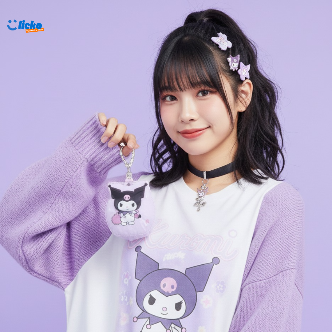 • Kuromi Focus: Multiple clips showcase Kuromi in different poses and designs, including flat snap clips with printed Kuromi graphics.